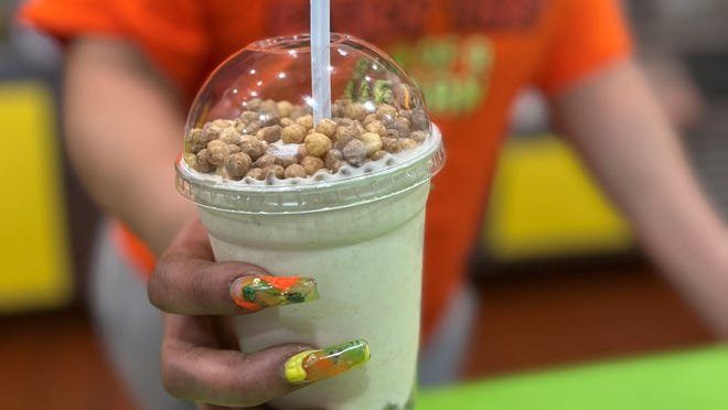 But as you turn the corner at the food court, bright balloons and pops of vibrant lime green, orange and yellow catch your eye.